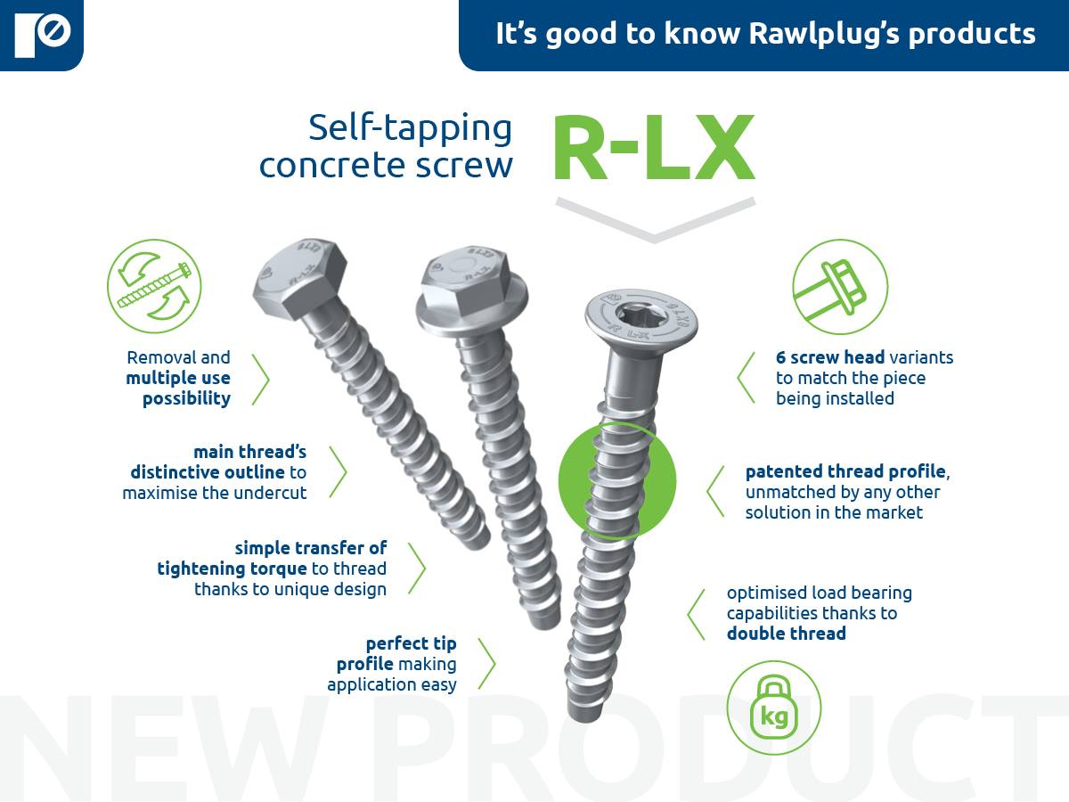 💪 Vít neo bê tông R-LX có thể được sử dụng trong bê tông nứt và không nứt, bê tông cốt thép và không có cốt thép.